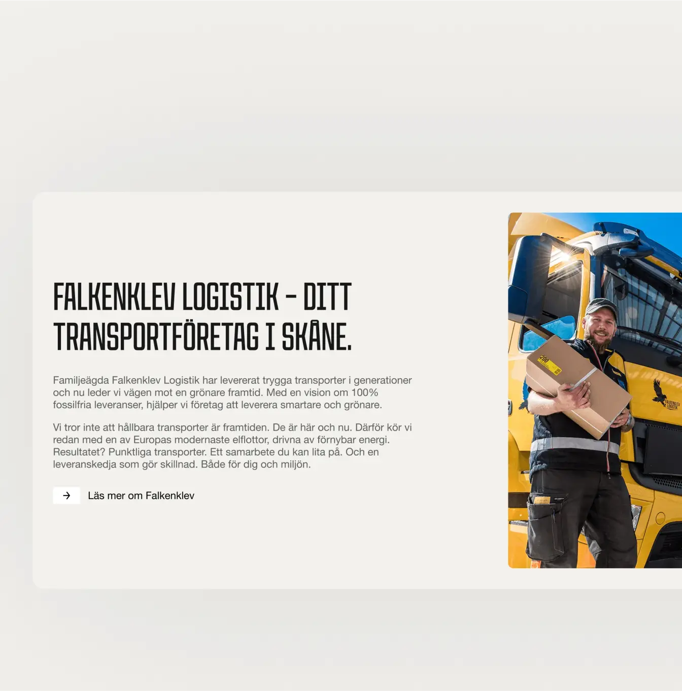 Tomorrow’s logistics, delivered today. Falkenklev Logistik’s ambition is bold. By 2027 they will be Europe’s greenest haulier. We turned that ambition into a digital platform built for visibility, credibility, and growth.