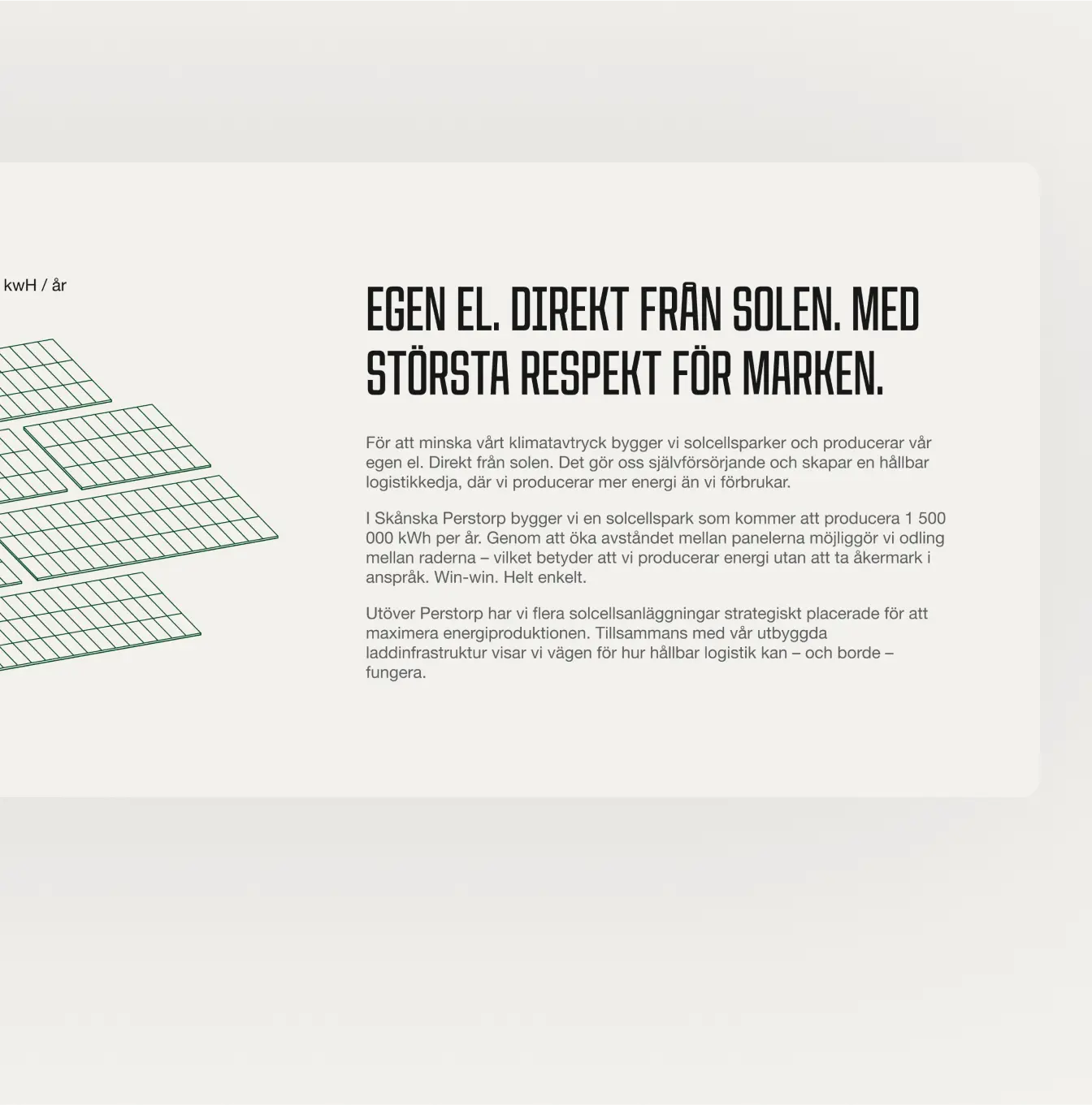 Real-time sustainability, made simple. Flexible modules showcase energy usage and solar output, keeping Falkenklev’s climate ambition front and center, and always up to date.